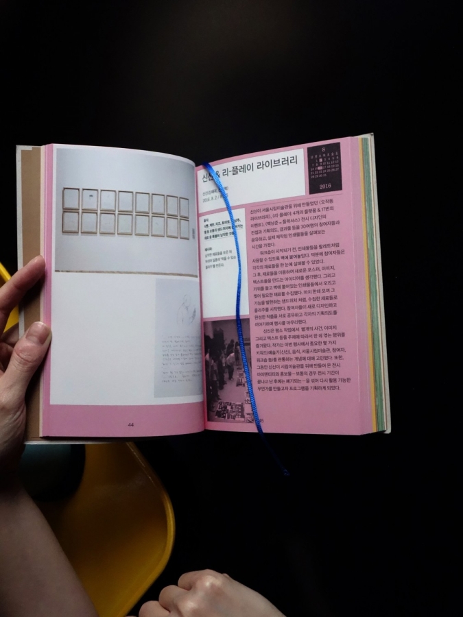 • 이러한 출판의 목적과 이 책이 품어야 하는 가치가 성공적으로 구현되기 위해서는 개별 프로그램 모두가 구체적으로 어떤 기획이었는지를 반드시 내용에 포함해야 했다. 따라서 참여 작가들에게 ‘레시피’라는 컨셉으로 프로그램의 절차를 정리해주기를 요청했다. 다른 한편으로는 ‘레시피’라는 것은 누군가가 이를 참고해 따라할 수 있는 지침이기도 하다는 점에서, 이 책이 유용한 참고 자료가 될 것을 의도했다. 원 자료는 프로그램에 대한 서술과 사진 자료 등 정보의 격차가 무척 심했기에 이를 균형있게 정리하는 작업에 시간이 많이 들었다.