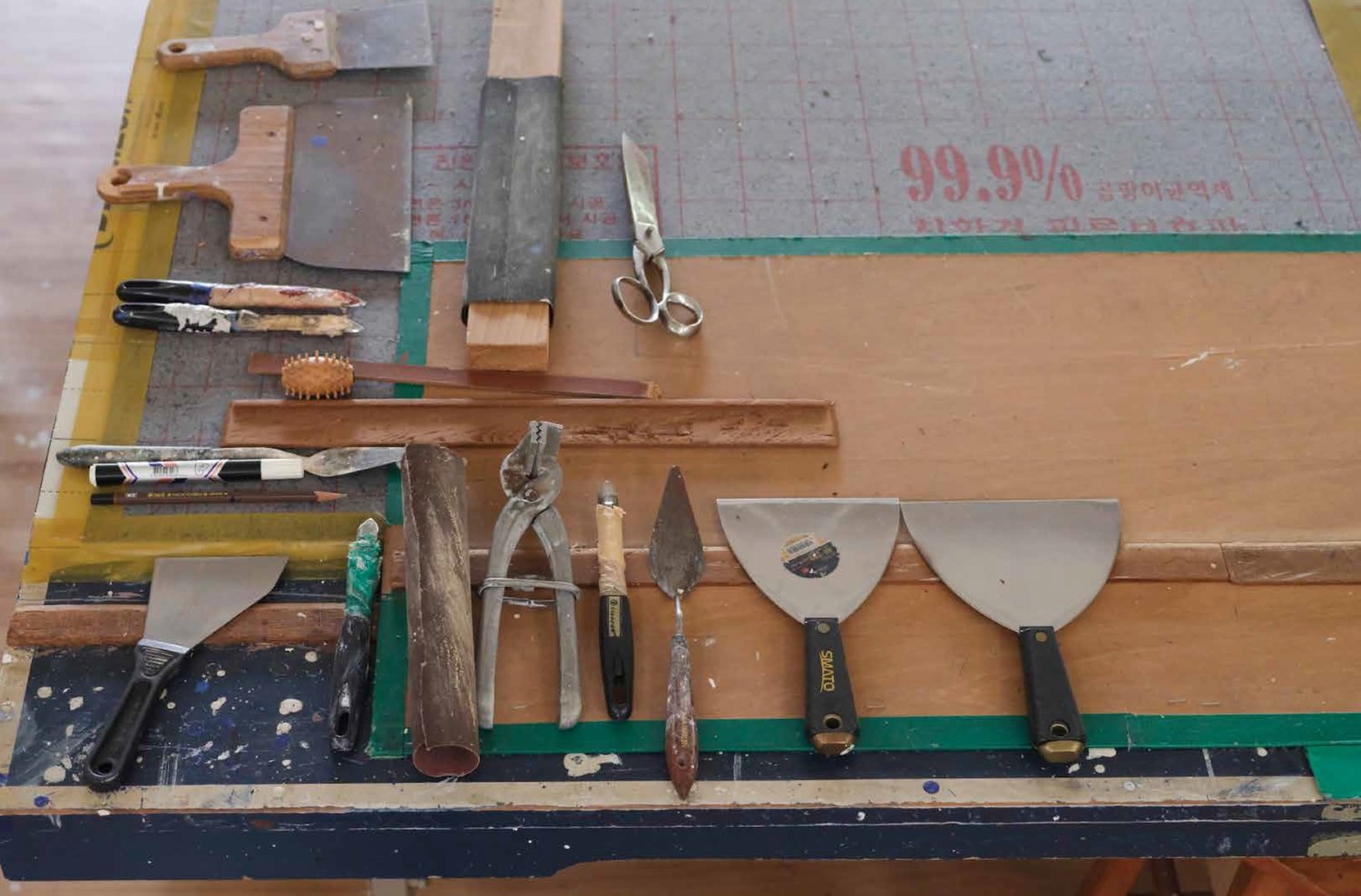 정상화는 자신의 창작행위를 ‘일’이라 칭한다. 창작행위에 특별한 의미를 부여하지 않으려는 작가의 태도가 엿보인다. 작업을 대하는 태도에서 그리고 그가 살아온 삶의 방식에서도 덧붙이거나 채우기보다 덜어내려는 흔적이 역력하다. 평면에서 평면을 찾아들어갈 뿐 읽어야 할 의미나 특정한 내러티브를 담지 않는다. 드러내고 메우는 과정의 숱한 반복을 통해 평면 속에 깃들어 있는 무한대의 평면을 밝힌다. 그만큼 작업의 과정과 작업 중 이루어지는 행위가 결정적이다. 하나의 색 안에 녹아 있는 뉘앙스를 달리하는 무수한 색 그리고 시각적 촉각을 유발하는 미묘한 결의 움직임은 ‘하나의 전체’로 경험된다.(기획의 글)
