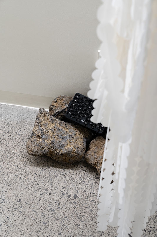 A 필드레코딩 사운드를 이용한 설치 작업입니다. 설치를 통해 공간적으로 합성된 소리는 제주에 관한 일종의 이야기 입니다. 전시장을 거니는 청취의 경험을 통해 제 이야기를 듣는 것이죠. 저는 이 작업을 위해 ‘들리는 소리’에 집중하며 제주를 돌아다녔고, 들었던 소리에서 비롯하여 제주를 이해해보려 했습니다.