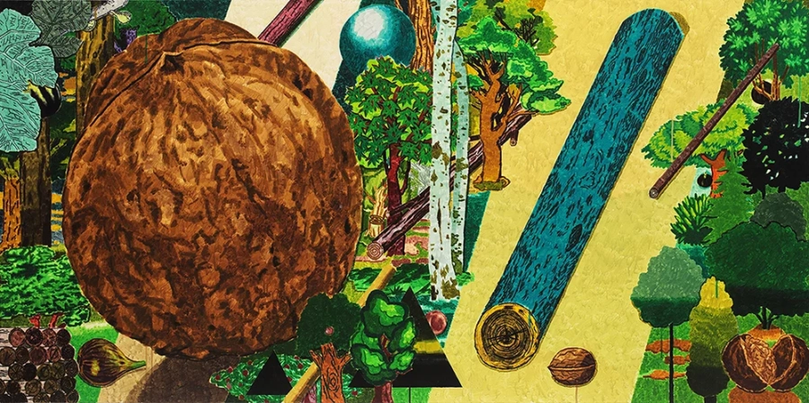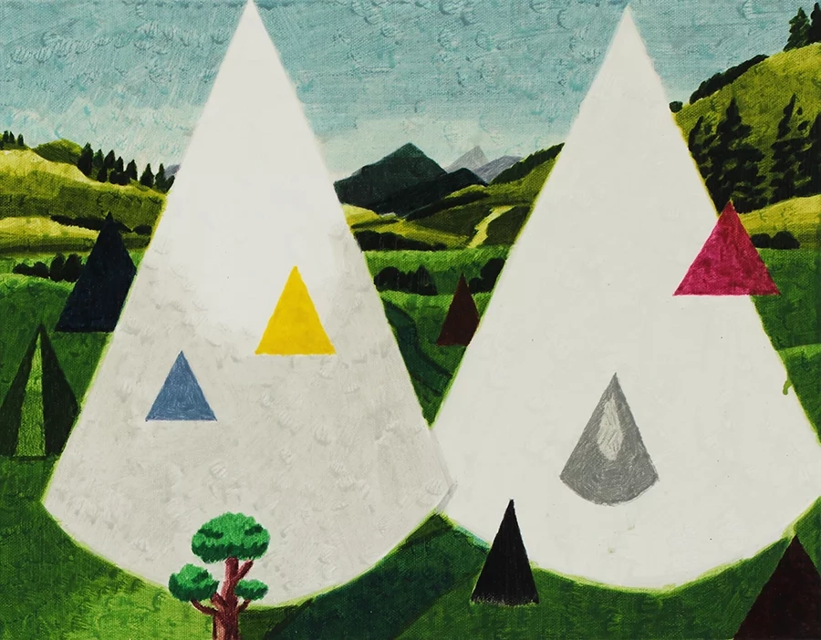 The only visible thing is form. The most frequent and important form in Hyunsun Jeon’s paintings is the cone. A cone is literally a cone, or an animal’s horn, or a mountain, or a rock, or a fruit, or structures of relationships. This form is a way of understanding the objects that draw the artist’s fascination and curiosity; it is also a way in which something reveals itself. It is not limited to morphology but is also about its time. Jeon’s cone, however, is somewhat peculiar. It itself is empty, and what we see is the relationship of objects that surround it. It is a parameter without a value. If we can read the artist’s oeuvre as a kind of a play, a cone is an improv performer who executes every role while always desiring their own movements. Such an undetermined form appears only within a certain sequence of relations, that is, only as a narrative. Jeon refers to cones as “undetermined objects for which judgment is suspended.” She further likens the cone to the Wizard of Oz, because as an amorphous abstract being, it changes its appearance depending on the subject it encounters.2 In this context, it may not be a coincidence that many of Jeon’s paintings have forests in them. The forest has long been the site of myth and a source of tension, fear, and romance; it is the sum of all the fluid relations of numerous objects that are undeterminable to humans. Only by getting lost in a forest can we have a glimpse of its intimate crossroads.