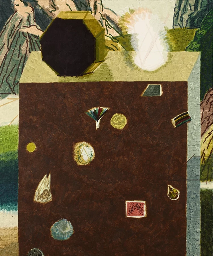 Jeon’s painting can, therefore, be understood as a cognitive model. Her pictorial reality is neither an exposition of a landscape that depicts the many possibilities intrinsic to the (transcendental) world, nor is it a map schematically illustrating the relationship between objects and their influences on each other. Rather, it is a continuous fluctuation between the waves that can be regarded as the Truth for the artist. In other words, it is the (cognitive) impossibility or unutterability of both ends of the wave. Her painting is precisely the exploration of this impossibility and the portrayal of the world as a space of symmetry built on this impossibility. It is as how the pitch-black, impeccable octagonal plane in Dark Daytime (2018) maintains tension with the self-evident objects and landscape within the square frame. If the belief that there is always something unknown on the other side of visibility is dichotomous, Jeon’s paintings reverse this Platonic belief. Instead of imagining the world beyond and following its traces, they assert that the site of instability and its repetition is the reality that orients the world beyond. The purpose of her painting, therefore, is not to think about darkness as such or to find a form that pervades the world. Rather, it is to discover the forms of life by tracing the workings of ceaseless oscillations, to rearrange those forms, and to reproduce the mystery of reality by re-appropriating those forms to the structure of the forces involved in the process. Here, Jeon, as the subject of this rearrangement, does not act as an authoritative organizer or a manager; rather, she is closer to one who follows the groundless existence of these objects from their side as much as possible. After all, waves are created by the repetition of infinitely rotational motions.