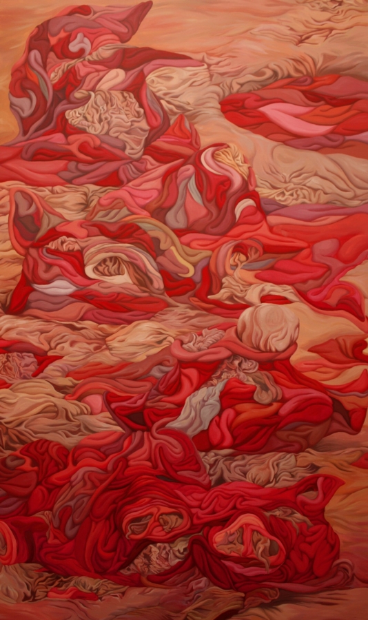 Lee As you just mentioned, ‘wrinkles’ of bodies stand out in your previous drawings. Wrinkles seem to be a valid form as they represent discarded bodies and present bodies as a mass with no boundaries on a at surface on the canvas. Then, how did the wrinkles become an important style in your paintings?