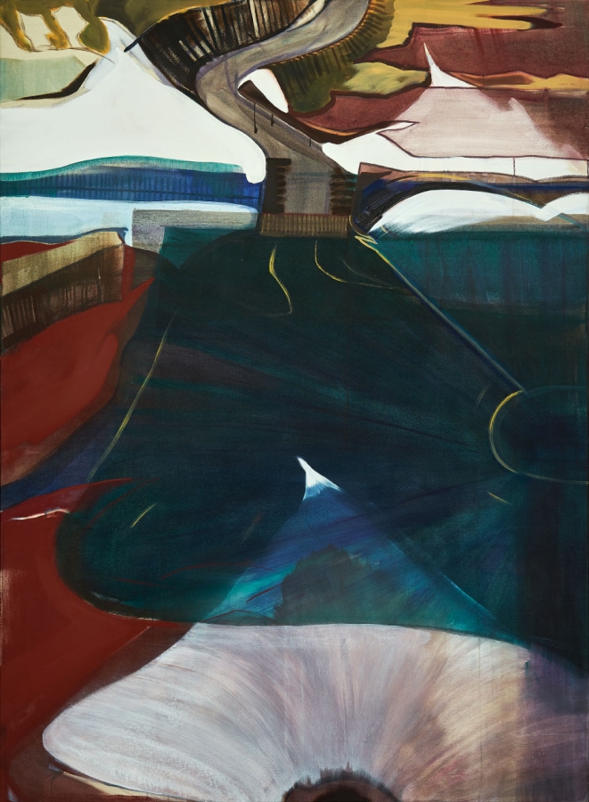 What Seeun Kim’s paintings imply is quite straightforward. They are the landscapes the artist witnessed and experienced in person, more specifically the ‘scenes’ one discover when they step further into the landscape. This so-called ‘scene’ signifies a certain image captured and blown-up through framing. Here, the artist captures the power that induces the form to a perpetually fluid matter. So to speak, the discreet and repetitive gaze and observation of the artist seize the specific duration that displays the demonstration of the power that constructs the form in the established, visible landscape. And generally, the apparatus of the pit is involved in this process. This is also something as specific as a puddle dug up in the road, a tunnel, or a split crack, but the eyes prying for the pit gaze into the invisible rule, rendering a certain scene as structural. For this reason, it is secondary to ask where the scene is located, what happened there, and what meaning it connotes to understand the artist’s works. If questions of these sorts presuppose the concept of place, it is because Kim’s scenes necessitate a discourse of space. The latter delays and renews meaning if the former is coded and reverted to meaning. The pit is a parameter that deals with the relations of form, rearranges the position of objects, and adjusts the fluidity of a landscape; it cannot be reduced to semantics.