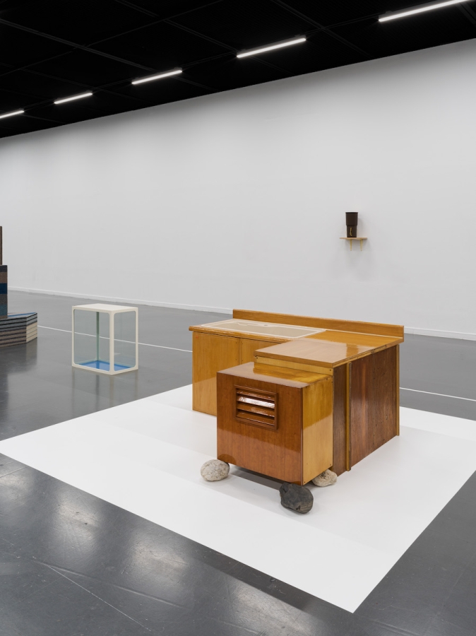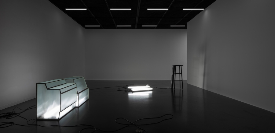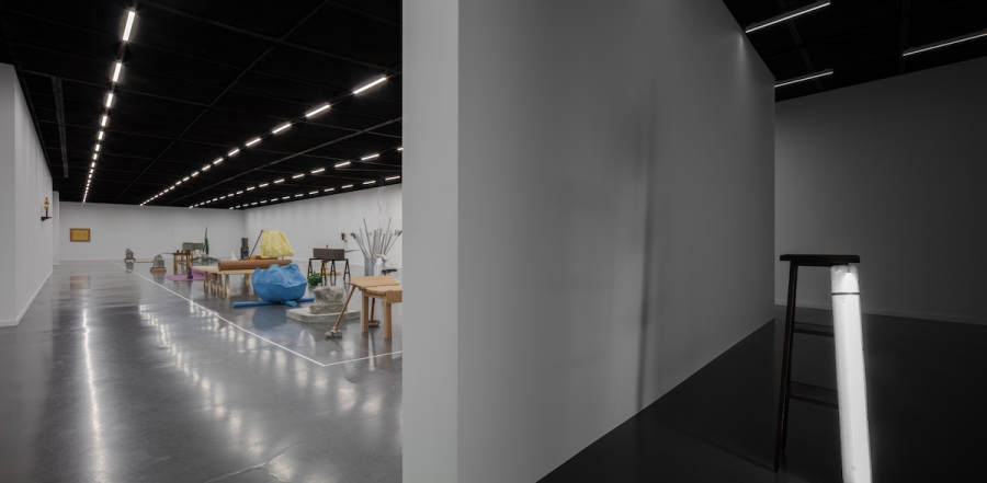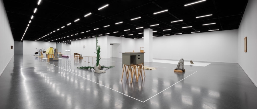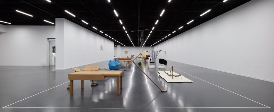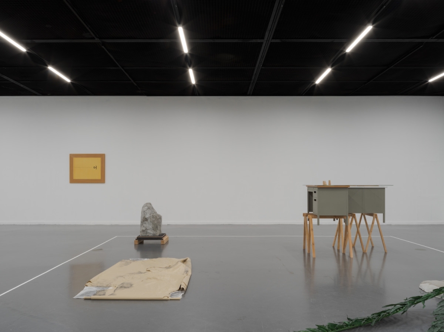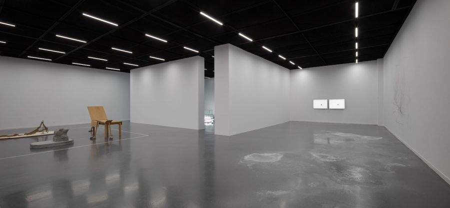 우선 오늘 본 것 전시장을 방문했을 때 작품으로부터 멀리서 확인할 수 있었던 아주 단순한 사실부터 말해보자. 무언가가 ‘여기 있다’는 사실보다 더 강하게 환기된 건 무언가는 ‘여기 없다’는 사실이었다. 전시장에 현실화한 건 내가 기억하는 자료화된 아카이브 목록에서 몇몇 이름뿐이었다. 그러므로 이건 누군가의 선택에 의한 결과다. 왜 무언가는 나타났고 무언가는 나타나지 않았지? 다음으로, 이 장소는 조정되고 조율된 상태라는 사실이다. 전시란 원래 그런 것이기에 특별한 건 아니다. 문제는 조정되고 조율된 방식이다. 이 전시장에서 일어난 조정과 조율은 오직 작품들 사이의 관계만을 변수 삼아 이루어진 것처럼 보였다. 크게 네 개로 나뉜 영역 중 전시장의 대부분을 차지한 긴 직사각형 모양의 영역이 이 사실을 가장 강력히 표명하는데, 이 영역은 공들여 제작된 흰색 선으로 명확하게 작품의 자리가 마련되어 내외부가 구분되어 있고, 작품들은 구획 안에서 이웃들과 씨름하는 것에만 열중했다. 나는 다가갈 수 없이 흰색 선 바깥을 맴돌며 그 시합을 관람해야 했다. 작품들의 배치 상태를 ‘시합’이라고 표현한 것은 아마 그것들이 긴장의 상태에 있는 것처럼 보였기 때문일 것이다. 조정과 조율을 위해 만든 흰색 선은 하나의 관람 조건이자 기획을 실행하기 위한 장치이다. 사물의 수많은 잠재성 중, 바로 여기서 문제 삼아 보고자 한 것은 작품 간의 관계성이라는 기획이다. 하나의 사물이 언제나 중층적이라고 한다면, 한 사물 옆에 다른 한 사물을 놓는다는 것은 그 중층성들을 헤집고 특정한 긴장을 유도한다는 것을 뜻한다.18 여기서 하나와 그 옆에 놓인 하나의 관계를 수학 문제 풀 듯 답을 찾아나가도 될 것이고, 관계들의 총체를 유기적으로 하나의 상으로서 파악해 봐도 될 것이다. 여기까지 생각이 미친다면, ‘선택’이란 바로 이 관계성, 서로 다른 시간과 장소에서 저마다의 이유로 태어나 조우할 일 없이 살아가던 이 사물들을 하나의 가시적인 네트워크 안에서 결속시켜 보겠다는 의도에 따른 것이라는 것을 추측해 볼 수 있다. 그런데 이질적인 것들을 하나의 네트워크에 위치시키기 위해서는 이질적인 것들을 통합하기 위한 프로토콜이 필수적이다. 이것들을 꿰고 있는 건 뭐지? 이를 확인하기 위해서는 사물들로부터 몇 걸음 더 뒤로 물러나야만 한다. 뒤로 물러나면 사물은 점점 더 물질로서의 존재감을 잃고 이미지가 되어가고, 그러면 어느 순간 사물들의 수다스러움보다는 사물들 사이를 흐르는 흐름의 풍경이 등장한다. 흐름이 있다. 어쩌면 이 전시에서 조각이라 이를 만한 건 개별 작품이 아니라 개별 작품들의 배치를 통한 저 흐름일지도 모르겠다는 생각을 한다. 개별들의 잠재성보다는 개별들을 연결하는 네트워크를 통해 무언가를 보여주고자 한다는 것을 알게 됐을 때, 나는 가만히 서서 흐름의 역동을 구석구석 살피게 된다.
