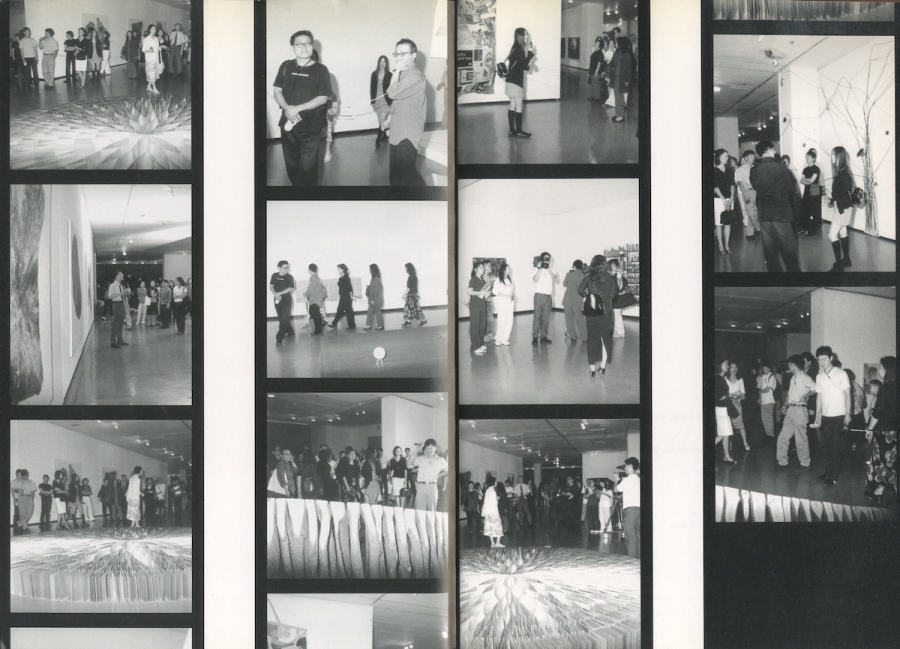 특히 예술 아카이브 작업을 한다는 것의 의미와 그 복잡함, 한계에 대해 내가 생각해 보게 된 계기는 한 장의 사진을 통해서였다. 그 사진은 정서영 작가가 참여했다는 젊은모색 2000: 새로운 세기를 향하여(국립현대미술관)에 대해 뭔가 쓸 만한 정보를 얻기 위해 뒤적거리던 도록의 마지막 부분에 있었다. 수십 장의 흑백 사진은 개막일의 전시장처럼 보이는 곳의 풍경을 담고 있었다. 전시의 출품작들은 축제의 분위기 속에서 와글와글 모여 얘기를 나누는 사람들 사이에서 역시나 자신감에 가득 찬 듯 놓여 있었고, 군상 속에는 드물게 내가 알아볼 수 있는 얼굴이 있었지만 거의 대부분은 내가 알지 못하는 이들이었다. 그중 한 사진이 눈길을 사로잡았는데, 이 전시에 출품된 정서영의 작업 발코니(2000)가 절반쯤 찍힌 것이었다. 당연히 캡션이나 부가적인 설명은 없었다. 이 작품 옆으로 기차놀이하듯 줄지어 가는 다섯 명의 사람 중 네 명은 반대편의 다른 작품을 보며 걷고 있었고 가장 앞의 한 남자만이 걷는 와중 발코니를 보고 있었다. 그 남자가 발코니를 보며 무슨 생각을 했는지 나는 정말 궁금했지만, 그건 아마 영원히 알 수 없을 것이다. 아니, 어쩌면 작품을 보지 않고 있는 네 명이 오히려 발코니에 대해 골똘히 생각하고 있고 그 남자는 전혀 다른 생각을 하고 있었을지도 모를 일이다. 그 사진을 통해서 내가 발코니라는 작품에 대해 더 잘 이해하게 된 바는 없다. 하지만 사물로서의 예술 작품의 삶에 대해서는 더 생각해 볼 수 있었다. 이 사진은 발코니의 온전한 모습을 담고 있지 않았기에 대표 도판으로는 쓰일 수는 없었지만, 나는 확신할 수 없는 이유로 이 지면을 스캔했고 자주 들여다보았다. 그리고 한동안 고민을 하다 ‘전시-젊은 모색 2000: 새로운 세기를 향하여’ 폴더에 이 사진을 추가했다.