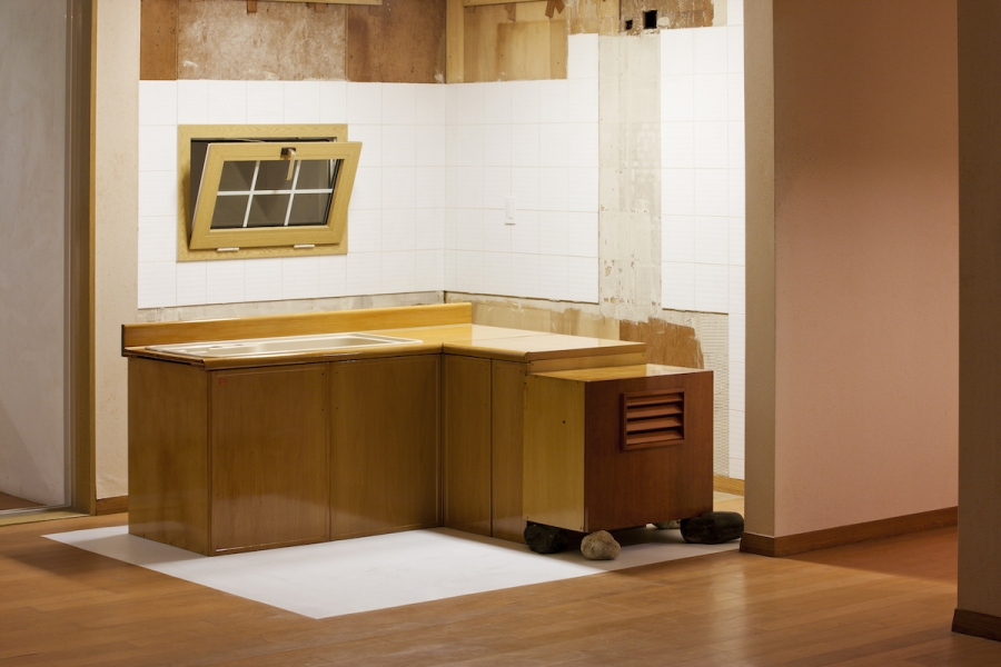 물질성의 구체적인 특징들을 발견해 버렸던 것이 아카이브 작업자로서 내가 당황한 이유 중 하나였다. 사진이나 글이 질감이나 규모, 부피감, 무게감 등을 알려주지 않았다가 그걸 확인해서 때문이 아니다. 그보다는 그 구체성들이, 어딘지 어긋나 있는 시간성을 드러내 버렸기 때문인 것 같다. 두 번의 시대착오가 동시에 감지된다. 처음은 저 사물이 당대의 세계에 대해 가졌을 시대착오. 싱크대(2011)의 “녹아내릴 듯 번들거리는” 표면이 싱크대의 재현이 아니라 싱크대가 조각으로서 등장했던 당대를 향한 하나의 문제 제기로서 시대착오적인 어긋남의 시간성을 표현한다면, 동시에 지금 여기 놓인 저 “녹아내릴 듯 번들거리는” 표면은 또한 그 당대와 지금 여기 사이의 거리감으로부터 발생하는 시대착오이기도 하다. 저 표면이 관여했던 움직임은 더는 여기 없다. 두 번째 시대착오. 작품에 한없이 가까이 다가가지 못하게 막아 놓은 것은 바로 두 번째 시대착오를 의식했기 때문이 아닐까 추측해 보는데, 말하자면 모든 하나하나의 작품들이 제각각의 이유로 정서영의 조각 실천의 서사 속에서는 여전히 역동적인 관계성을 형성한다고 하더라도, 가까이 다가가야만 확인할 수 있는 물질적 구체성은 지금 여기 이것을 바라보는 나의 시공간적 조건과는 이제 관련이 미약하기에 우리를 그것으로 안내하지 않는 것이다. 유념할 것은 이것이 과거 작품에 대한 부정이나 폐기를 선언하는 것이 아니라, 사물이 외부와 연결된 여러 통로 중 하나를 그저 임시로 닫아둔 정도뿐이라는 것이다. 작품이 표면이나 물질성만으로 수렴하는 것은 아니니까.