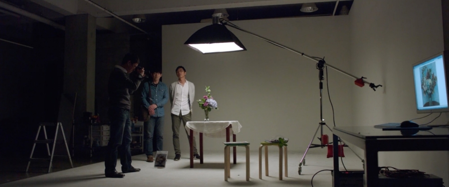 이도훈 내가 인상적으로 봤던 것 중 하나는, 현수가 조화 꽃시장에 물건을 받으러 갔다가 ‘조화가 생각보다 예쁘네요’ 하는 것이었다. 그 다음 씬으로 꽃병을 스튜디오에서 촬영하는 장면이 나온다. 조화라고 하는 것은 사실 생화의 아름다움을 따르는, 인위적인 것이라고 할 수 있다. 사보에 실릴 이미지를 위해 이리저리 사진을 찍고 그렇게 평균적인 미적 감각 안에서 자기의 위치를 찾아 나간다는 의미가 있는 것 같다. 나는 그 두 씬을 붙여 놓은 이유가 궁금했다.