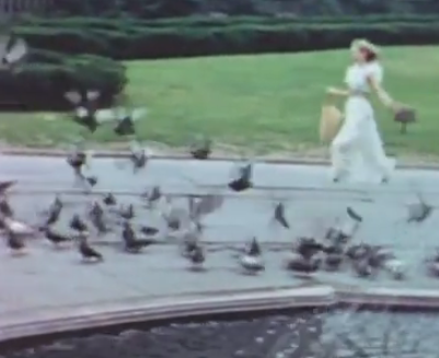 화면에서 그웬이 사라졌을 때, 그 화면은 그웬을 외화면에 방기하기보다는 시선의 주체 그 자체로 전환시킨다. 이를 암시하는 부분은 영상의 후반에 등장한다. 카메라는 화면의 왼쪽 밖을 응시하고 있는 그웬의 얼굴을 몇 초 정도 클로즈업하여 보여주고, 그다음 장면으로 공원을 서성이는 하늘색 치마를 입은 또 다른 소녀를 보여준다. 그 소녀는 화면의 왼쪽에서 등장해 두리번거리다가 오른쪽으로 나가고, 곧이어 오른쪽을 응시하는 그웬의 얼굴을 보여준다. 그리고 다시 화면은 그저 새들이 걸어 다니는 공원에서 무언가를 이리저리 쳐다보는 소녀의 모습을 찍는 것이다. 즉 요정으로 분한 그웬을 매개변수로 두고, 카메라의 시선과 숏의 배치를 활용함으로써 일상적인 도시 공간은 친밀하고 익숙하면서도 매우 낯선 기묘한 감각을 생성하는 상태에 놓인다.