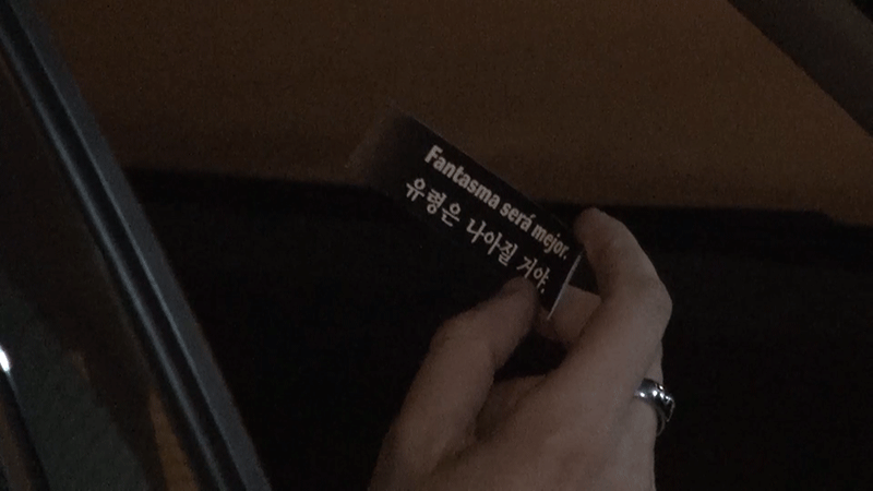 The Ballad of Real Estates is a series of videos that Part-time Suite created each year since 2015. The Ballad of Real Estates and The Ballad of Real Estates II are produced in Spain and Korea respectively and the series is continued into the recent TOLOVERUIN in Japan. In this series of works, the individual spaces, which are the object of framing, are neither represented as concepts nor reduced to meanings but are shown as their own movement-ness 2. This is because rather than reproducing the sceneries or providing information related to the sceneries, the videos are focused on what is being performed by the artists in those sceneries. Set in a number of cities in Spain, The Ballad of Real Estates shows the interior of buildings that look like ruin and the desolated streets through the lens of the camera. Appearing occasionally on the screen, the hands of the artists collect texts here and there on walls and stairs and apply stickers that say things like “Bricks and cement follies ,” “Long, long draught,” “Culture or incentive,” or “The ghost will be better,” before finally they are seen erasing the texts on the stickers or writing the same words repetitively right on the stickers. Also performed in this video is to attach a vast number of keys to a waistband; the artists then install the key-band in various places of the cities and let a dancing b-boy wear the belt to create a cheerful movement. This performance gives a different meaning to the object, the keys, and the places where the object intervened are liberated from the helpless stasis and recontextualized.