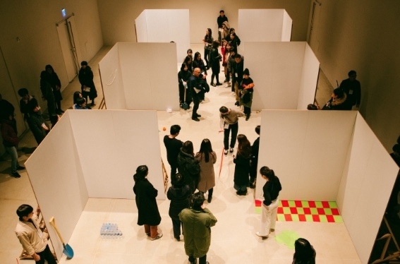주로 시각적 이미지로 전해 내려오는 역사화 된 행위 작업은 퍼포먼스 연대기의 공연장에서 그리 엄정하지 않게 재연된다. 그럼에도 공연장에서의 행위가 무언가를 참조한 재연임을 이해하게 만드는 것은 일종의 가족-유사성의 효과 때문이다. 이는 기록된 행위 자체가 근본적으로 ‘껍데기’에 지나지 않는 것이 아닌가 하는 질문으로 읽히고, 그 껍데기-이미지를 매개로 관객의 경험은 다시 조직된다. 해당 행위가 무엇인지 명시하지 않은 것, 공연의 시간 동안 행위에 관객이 함께 참여하다시피 바투 잡아놓은 거리, 행위를 뒤죽박죽 동시다발적으로 섞어놓은 점, 관객의 어떠한 우발적 상황도 가능한 느슨한 연출, 가벽을 이용해 계속해서 뒤바꾸는 공간은 기존의 역사적 서술과는 어긋나게 만들기 위한, 껍데기-이미지를 재배치하는 연출의 전술일 것이다. 따라서 이미지를 공연으로 호출하고 그것을 재배치함으로써 비평적 질문이 관객에게 던져졌다는 점은 인정할 수 있을 것 같다. 그러나 그 비평적 질문은 실제 공연에서 갈 길을 잃고 헤매는 것 같았다.