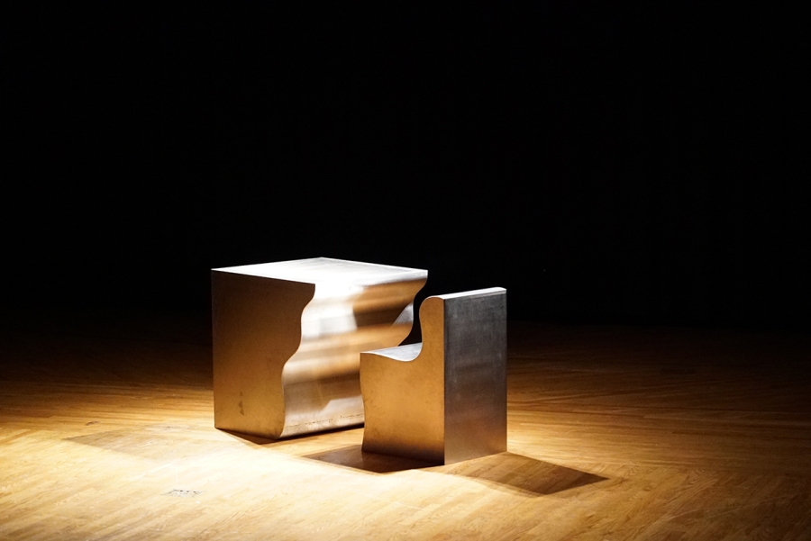 마침의 무대에는 두 개의 사물이 약간의 거리를 두고 놓여 있다. 하나는 작고 하나는 크며 스테인리스 재질이다. 둘 모두 네 면은 편편하고 직각으로 맞붙어 있지만 두 면은 굴곡져 있다. 육면체를 형성해 가고 있는 중인지, 육면체에서 깎여 나간 것인지 모르겠지만 언뜻 하나는 책상처럼 다른 하나는 의자처럼 보인다. 하지만 이내 그것이 책상과 의자일 것이라는 생각은 그만두게 되는데 그러기에는 전혀 기능적으로 보이지 않기 때문이다. 방: 사물을 위한 지침의 화자가 사람이 아니라 만약 저 사물들이라면, 아마 사물들은 그것이 원래 놓여 있던 “작은 방”을 떠나와 여기에 당도한 것이라고 생각할 수도 있겠다. 스스로 어떤 질서를 벗어난 사물들. 공연이 시작하고 무대의 왼쪽에서 최민선이, 오른쪽에서 강진안이 등장한다. 최민선이 큰 사물을 기울여 작은 사물의 모서리에 기대어 아슬아슬하게 균형을 맞춰 둔다. 이후 30여 분 동안의 공연에서 두 안무가는 때로는 합심하여, 때로는 외따로, 때로는 서로 견주며 사물의 위치를 무대라는 영역 안에서 이동시키고, 사물들이 놓이는 방식을 찾고, 그것과 몸이 관계되는 방식을 천천한 호흡으로 살펴 나간다. 일기: 안무를 위한 지침에 나오는 “가구는 우리를 (어떻게) 옮긴다.”라는 문구가 의미심장하게 눈에 들어온다. 사물이 몸을 움직이게 만드는 수행적 힘과 절차(어떻게)가 괄호 쳐져 공백으로 남아 있다면, 최민선과 강진안의 안무는 이 괄호 안을 채울 수 있는 단어의 목록을 만드는 것 같다. 그리고 그것은 원칙상 끊임없이 이어질 수 있다. 여기에 들어가는 무언가에 따라 사물들의 거리는 멀어졌다 가까워지기를 반복하고 계속해서 다른 얼굴로 서로를 마주한다. 사물들 간의 질서는 그저 유동적인 어떤 상태로만 여겨질 뿐이다. 공연은 최민선과 강진안이 사물들을 공연이 시작할 때 있었던 처음 그 자리에 두고 퇴장하는 것으로 끝난다. 그런데 최민선과 강진안의 자리가 서로 바뀌어 있다. 왼쪽에서 들어왔던 최민선은 오른쪽으로 퇴장하고, 오른쪽으로 들어왔던 강진안은 왼쪽으로 퇴장한다. 이 뒤바뀜은 사물들에 관하여, 공연 전체에 관하여 중요한 암시를 전한다. 사물들만이 남은 텅 빈 무대는 공연이 시작되기 전과 아무것도 달라진 것이 없는 듯 보이지만, 그것은 원래 상태로 회귀된 것이 아니라 반전된 다른 위상을 가진 무언가가 되고 언제라도 다시금 사물들의 움직임이 되풀이될 수 있음을 알린다. 사물은 여전히 움직임 중에 있음을, 공연 또한 여전히 전개되고 있음을 알리는 긴장을 ‘마침’으로 두는 것이다. 여기서 중요한 것은 반복이라는 개념이다. 의미심장하게도 마침의 분량 대부분은 아무것도 쓰여 있지 않은 빈 면이다. 방: 사물을 위한 지침, 일기: 안무를 위한 지침, 점: 음악을 위한 지침이 연이어 서술된 이후 91면에 이르는 공백이 이어지고 세 글 모두 내용은 같지만 다른 조판으로 지면을 차지한다. 이 반복에서는 일기–점–방으로 순서가 바뀌어 있다. 그리고 다시 91면의 공백이 이어지고 또 다른 방식으로 디자인된 세 글이 점–방–일기 순으로 쓰여 있다. 이렇게 마침은 끝나지만, 다시 어디선가 방–일기–점의 순서로 글이 반복될 것이다. 직선으로 나열된 이 순차가 실은 서로 꼬리를 물고 있는 회전운동이라면 이 연쇄는 영원히 이어질 것이다. 물론 그것이 시각적으로 보이는 방식은 하나도 같지 않으리라는 기대와 함께 말이다. 마침은 그리하여 단 한 번도 같은 것이 될 수 없는 개별성을 생산하는 무한한 반복의 시퀀스를 상상한다. 회전운동이 진폭을 가진 파동을 만들어 내는 움직임이라면, 이 반복의 시퀀스 구조는 그것을 그저 두서없이 발산하도록 두지 않고 일정한 방향으로 나아가도록 한다. 그렇게 어떤 불가해한 ‘리듬’이 형성되는 것이다. 이러한 단독성의 문제는 류한길과 진상태의 음악에서 보다 여실히 다루어질 수 있다. 이틀에 걸쳐 이루어진 마침 공연에서 최민선과 강진안은 같은 안무를 선보였지만 류한길과 진상태의 음악은 두 날이 완전히 달랐다. 그리고 두 번 모두 음악은 관객이 이해 가능한 방식으로 무대 위의 사건과 관계되지 않고 그저 소리 자체의 청취로만 존재했다. 불화라면 불화일 것이지만, 사실 애초에 거기에는 관계의 기대감 없이 어떤 거리만이 있을 뿐이다.5 소리는 반복의 구조 안에서 언제 어디서든 그저 출몰했다가 몸을 감추는 일을 반복할 것이다.