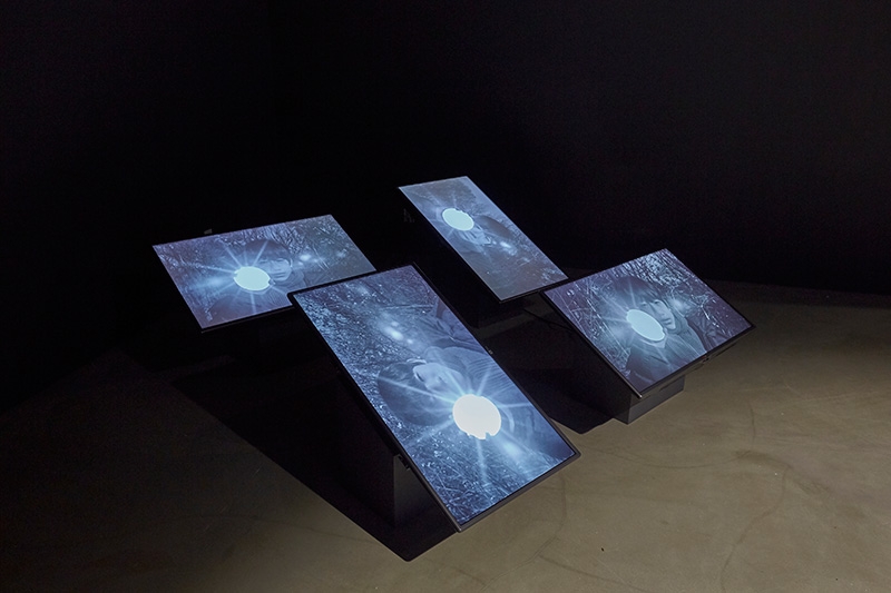먼저 그의 말들에 대해 살펴보자. 예언가의 말(2018)은 스크린의 화면을 한 남자의 얼굴로 가득 채운다. 그 얼굴은 가로로 누워 있고, 목 아랫부분은 보이지 않는다. 그는 눈을 감은 채 입만을 움직이며 감정을 격앙시키며 대사를 읊조린다. “분쟁, 분열, 전쟁, 살인, 비참, 불행, 비극, 고통, 고뇌, 의심, 거짓, 사기, 복수, 원망, 후회, 망각”은 “온기를 탈취하는 이기심과 증오”이며, “파멸을 잉태하는 밤과 어둠”에 속한다. 반면 “그리움, 기억, 기다림, 소망 부활”은 “희망의 단편”, “마음속에 박혀있는 빛의 파편”이다. 이와 같은 대조는 한데 섞여 들어가며 어둠속을 더듬는 시간을 구조화한다. 즉 어둠과 빛은 서로에 상관하는 것으로 이 문장은 어떤 현실의 리얼리티를 지시한다. “빛을 삼키는 깊은 어둠의 터널” 속에서 “곧 다가올 빛 조각을 찾길 기대하며, 절망의 걸음과 희망의 걸음을 번갈아 가며”, 그렇게 “어둠을 지나치는” 그런 시간 말이다. 그리고 이 말은 곧장 미래의 시간으로 나아간다. “삶, 빛, 향기로움, 대지의 사랑”, “빛을 찾아 짙은 어둠의 터널을 지나가자”고 말하며, 서로가 서로의 빛이 되어주기를 요청하며, “혼돈, 분열의 어둠을 밀어내어 햇살 속으로 들어가자”라고 말하며. 그가 사용하는 명확한 단어들은 세계를 분명히 이분법적으로 구분한다. 어둠의 세계와 그것이 아닌 바깥의 세계로 말이다.