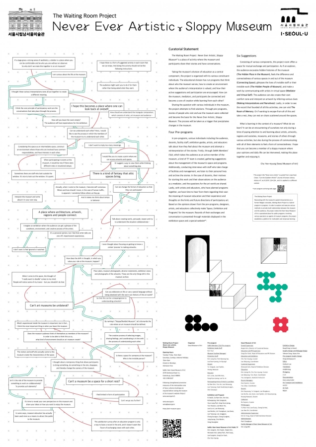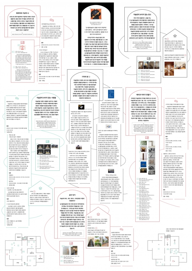 서울시립미술관 남서울미술관에서 진행된 대기실 프로젝트 전혀 예술적인 엉성한 미술관(2020년 8월 25일 - 2020년 10월 25일)을 위해 제작된 오프라인 인쇄물과 온라인 리플렛.