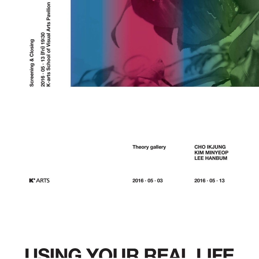 Using Your Real Life의 전시장과 책자는 독립된 것이자 상보적인 것으로 기능하도록 기획하였다. 책자가 이한범, 김민엽, 조익정의 대화였다면 전시장은 그 대화가 불특정다수에게 분산되는 공간일 것이다. 그러나 대화와 마찬가지로 전시장은 느슨하게 맥락화 된다. 이번 전시는 결과물이 아니라 과정일 뿐이기에 관람객에게 어떠한 강요도 하지 않기를 바라며, 참여자들은 단지 최소한의 질문만을 던져 놓을 것이다. 이를 어떻게 구성할 지는 결국 또 다른 삶에게 이양된다.