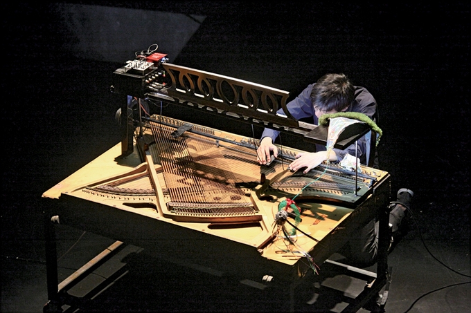 최근 그가 발명하여 여러 공연에서 선보인 ‘하이브리드 피아노’는 피아노의 형태를 하고 있지만 현악기의 소리를 낸다. ‘하이브리드 피아노’는 피아노라는 악기가 가진 역사적 유산, 즉 고전적인 연주부터 망치로 피아노를 부수는 퍼포먼스를 선보였던 백남준까지 그 악기를 다양한 방식으로 다루어 온 역사 속의 여백을 찬찬히 되짚은 결과물이기도 하다. 이처럼 그가 만드는 새로운 악기는 기존의 사물이나 체계와 변증법적 관계에 놓인다. 그것은 완전히 새로운 해방적 상태를 꿈꾸는 것이 아니라 주어진 감각을 기반으로 음악의 개념을 점진적으로 확장시켜 나가는 느린 발걸음이다. 이런 점에서 그의 음악은 기계 장치나 사물의 기본적인 하드웨어를 근간으로 삼고 거기에서 모든 가능성을 열어 두는 유물론적인 즉흥, 연주자와 청취자가 동일한 위계에 놓이길 바라는 아나키적 음악이 아니라 연주자에게 음악의 새로운 인터페이스를 부여하는 것, 일종의 프로그램을 제안하는 일이다. 유물론적 즉흥이 탈-이데올로기 적이라면, 권병준의 악기는 대안적 이데올로기다. 전자가 미적 경험 자체를 끊임없이 환원시키려 한다면, 후자는 미적 경험을 매개로 한다.